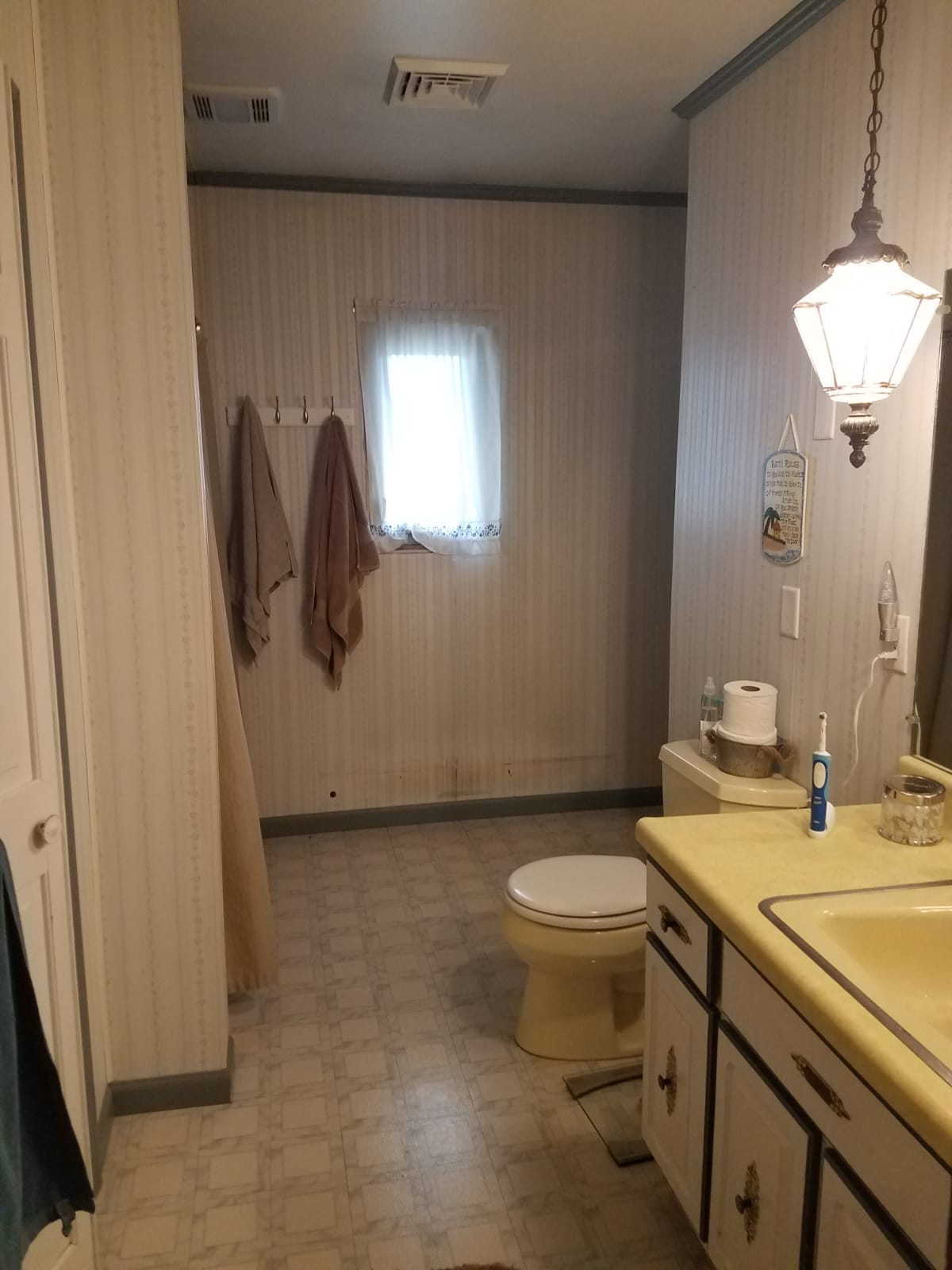 Turned one larger original bathroom into 2 smaller ones, both with existing openings in them