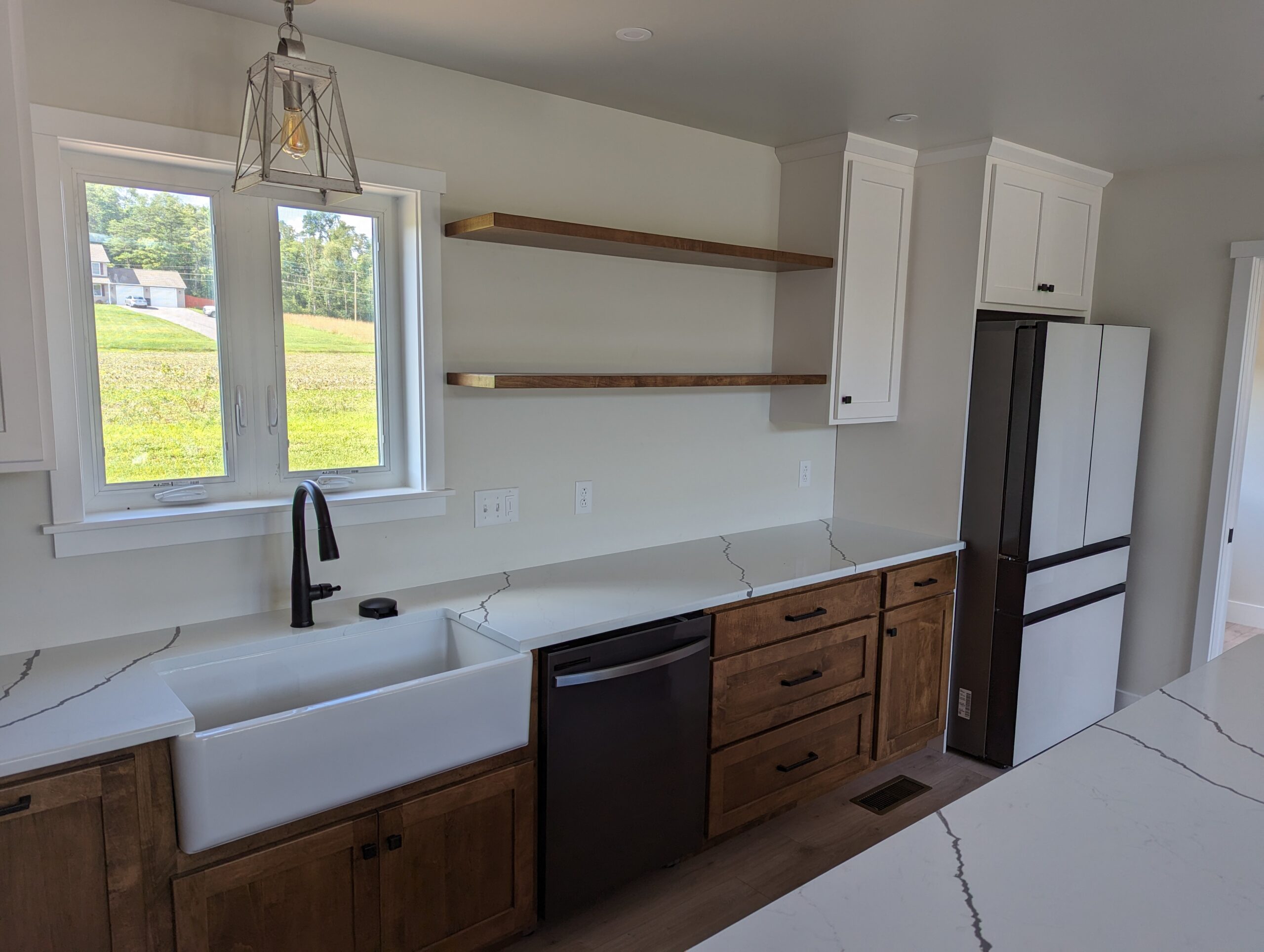 Ian & Jennie 1st came to us in the fall of 2022 about a year after they were dropped by another builder who was planning to build their house. Also, they were newly pregnant with a due date for their little one in the fall of 2023. Time was of the essence, but we did have enough time. Having to move pretty quickly, we engaged in a cost-plus agreement with a rough budget to work from. Ian was great to work with and also wanted to put as much effort into the build as possible themselves. He had some equipment, so he was able to do some excavation and dirt moving, etc. Due to comprehensive planning and design involving some engineered lumber & point loads, things pretty well went as planned throughout the project. Budget actually ended up being a little scarce, so we did a few things like left the bonus room above the garage unfinished, the main garage largely unfinished, and the master shower without tile for the time being. Instead, some of those funds went into creating a tighter envelope and thermal performance and hydronic heating, etc. Complete with ICF walls in the basement, we were able to get about a 1.6 ACH blower door test. Code minimum is 3 ACH, so its truly fun to be able to say we can get 60% better air tightness than what code requires, and all without a lot of extra effort. Overall, Ian and Jennie were pleased and thankful for our efforts, but it was a classic case and stress of spending more than a bank provides.