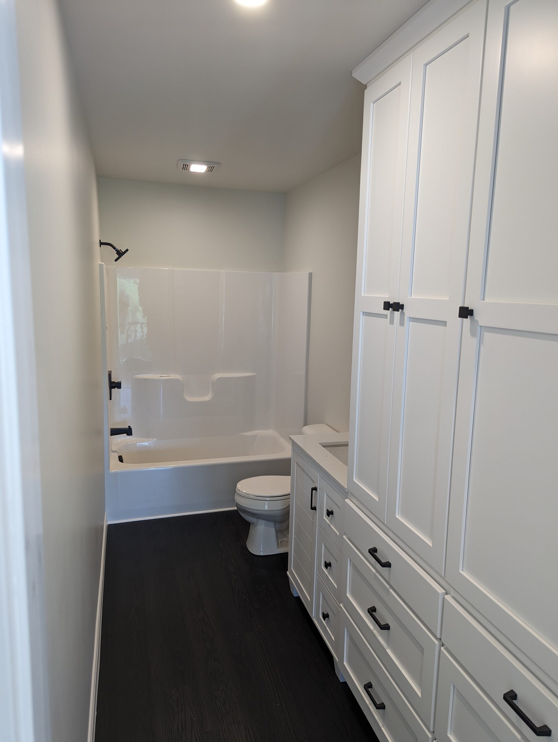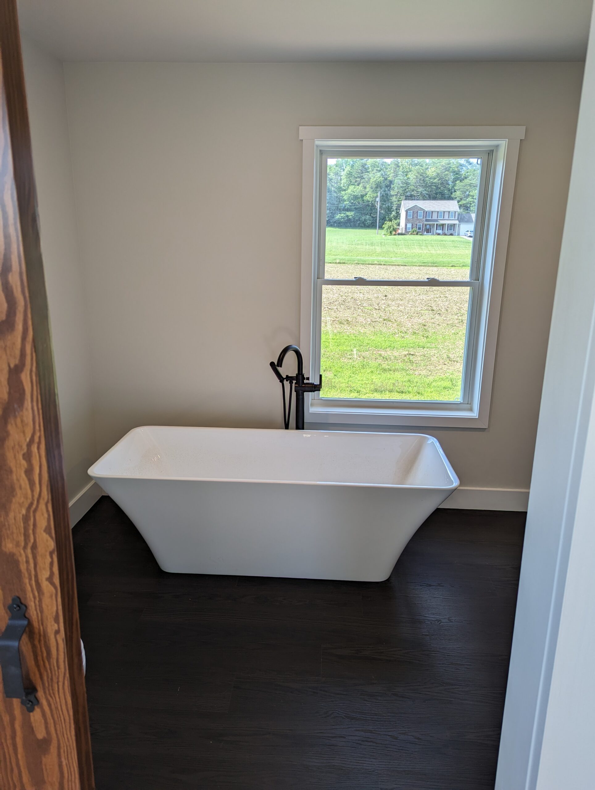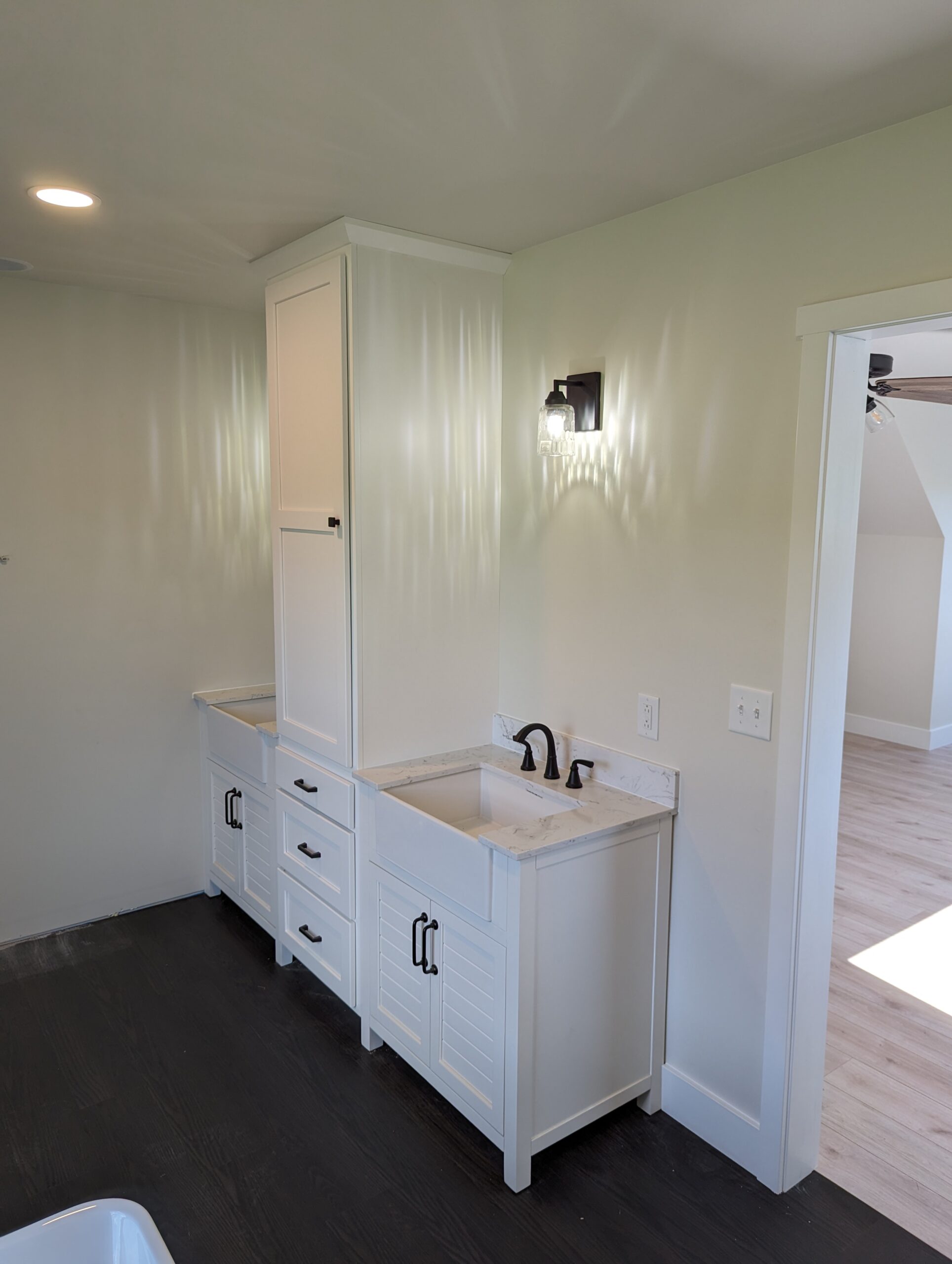 Customer supplied vanity cabinets, tops, & freestanding tub