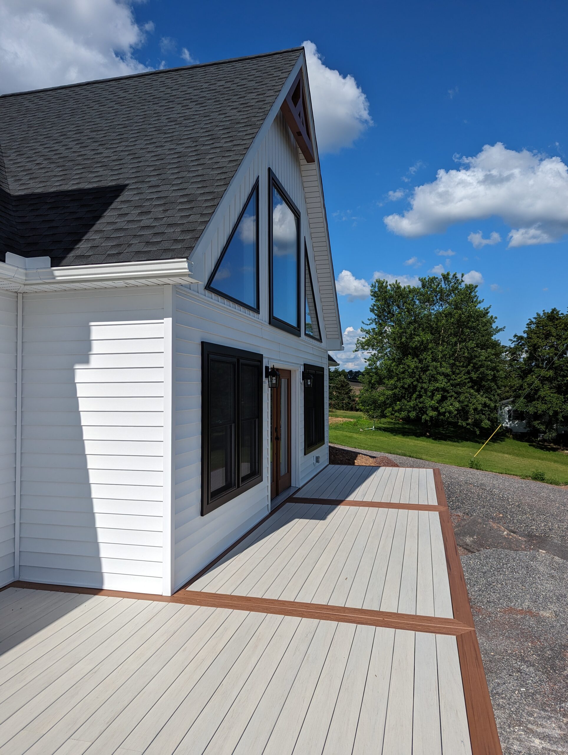 Typical Vinyl Siding finishes with timberframe accent pieces