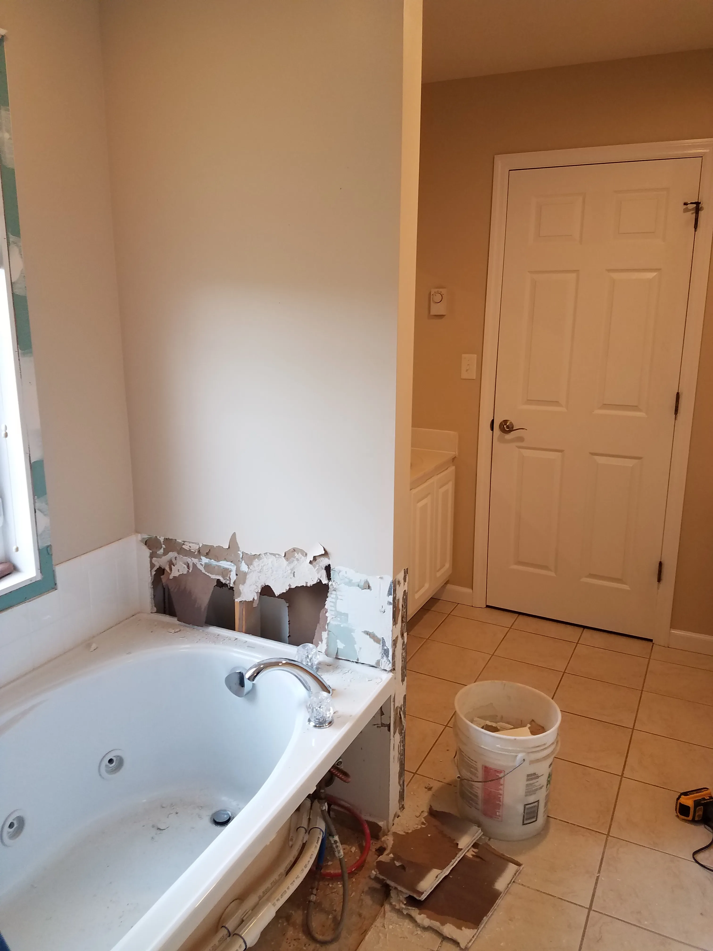 We launched the renovation of this second-story master bathroom by tearing out the old jacuzzi tub and dividing wall. Next, we rebuilt the framing, shower area, and subfloor to accommodate a new layout. We installed ceramic tile plank flooring and a white subway tile shower with niche, curb, and a linear drain. Our cabinetry build included custom center piece, white modern tops with dual integrated sinks, and small rim mosaic backsplash. In the end, this high-end project turned out beautifully!